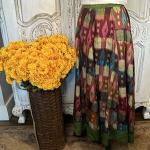 Gypsy Core Boho Hippie Multi Color Graphic Full Maxi Skirt Fully Lined