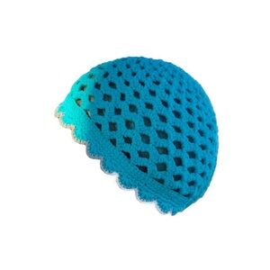 Stylish crochet beanie. Vibrant turquoise color. Perfect for any season. Handmade. I purchased this and it was too small for my head. It’s shallow please see the measurement. The color is spectacular.