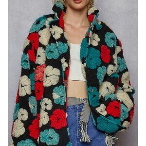 Vintage festival energy in one bold layer — the Gypsy Flower Jacket brings oversized florals, rich tones, and a cozy plush texture that makes it both statement + comfort. Pair it with denim, dresses, or boots for the ultimate retro-boho look.