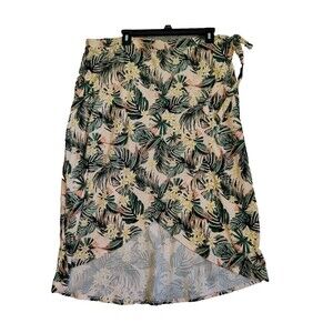 Gypsy & Jade Wraparound Midi Skirt Large Palm Tree Tropical Beach Boho Vacation