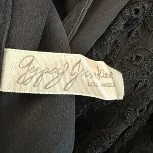 Gypsy Junkies 100% Silk Black Top Lace Hem Boho Indie Festival Blouse | Small