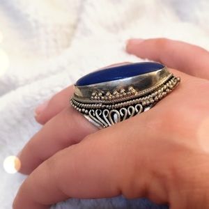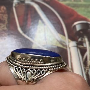Boho gypsy ring artisan made. Blue stone some wear note photos.