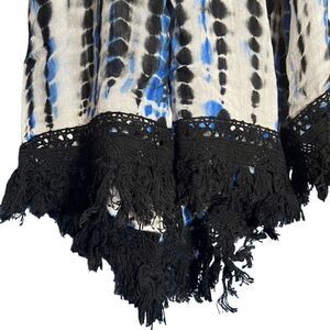 Gypsy Sand Women's Frayed Hem Tie-Dye Pattern Blue/Black/Cream Scarf NWT
