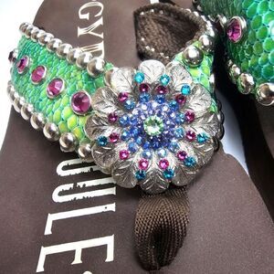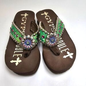Gypsy Soule Bling Beaded Flower Snake Platform Western Flair Flip Flop Size 8.5