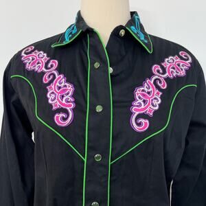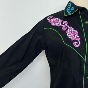 Gypsy Soule Embroidered Rebel Heart Western Button-Down Black Shirt | MEDIUM