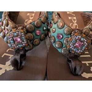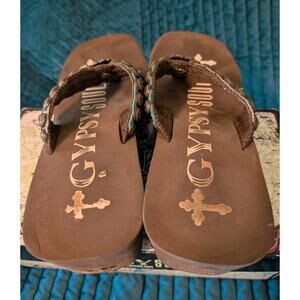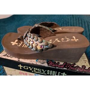Gypsy Soule Vanglow Brown Flip Flops Thongs Studded Swarovski Crystals Size 10