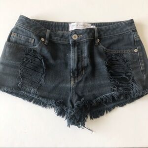Gypsy Warrior Womens Junior Black Distressed Frayed Cut Off Denim Cutoff Short Size 7