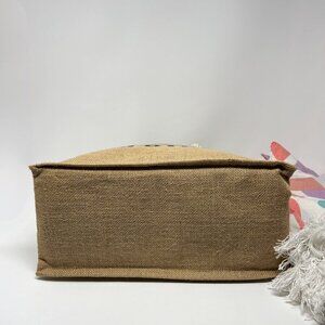 Gypsy Womens Jute Tote Bag Soft Cotton Rope Handles & Round Blanket Fringe Edge