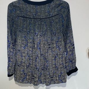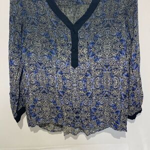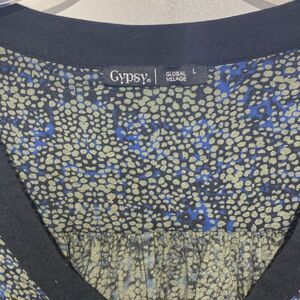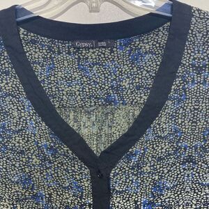 Gypsy 05 Women's Blue Long Sleeve V-Neck Abstract Print Peasant Blouse Large