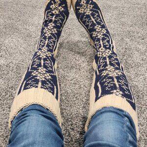 Gypsyz sweater boots size 10 blue and cream