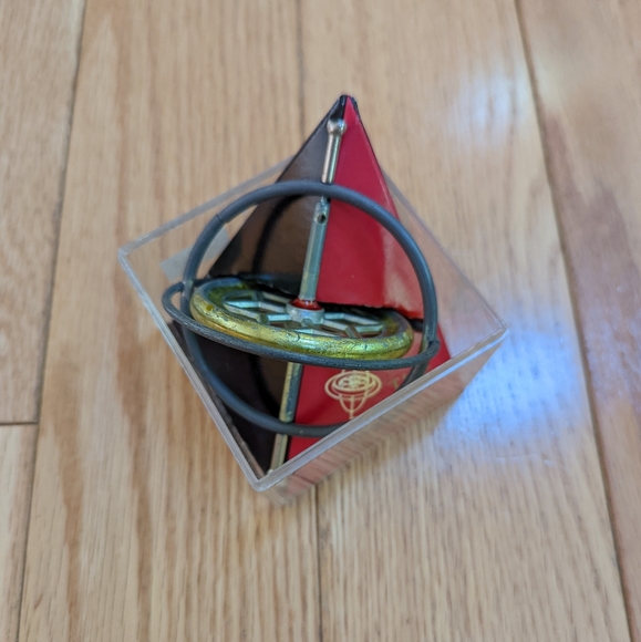 basically a spinning top that spins for a really long time and is great at balancing on things as long as it's spinning. Just put the string through the hole and twist, then pull the string out. Makes a great cool kids toy.