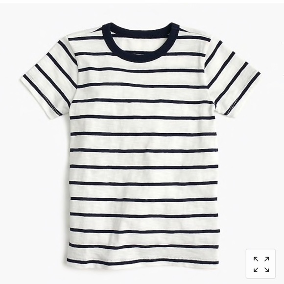 One navy and white striped short-sleeve t and one grey with stripe detail on long sleeve. New, never worn and so cute!