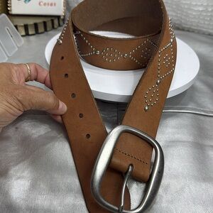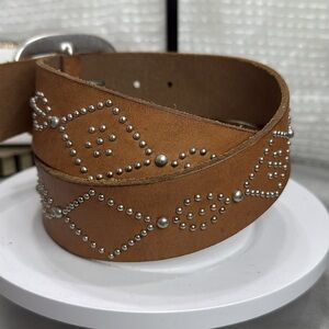 (H) Banana Republic Tan Silver Studded Leather Belt, Size S