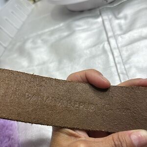 (H) Banana Republic Tan Leather Belt with Silver Studs, Size S, in Perfect Used Condition. See photo for details. This Banana Republic belt showcases a sophisticated tan leather design, accentuated by a sleek silver buckle and elegant studded embellishments. Crafted for style and durability, it is the perfect accessory to enhance any casual or formal ensemble.