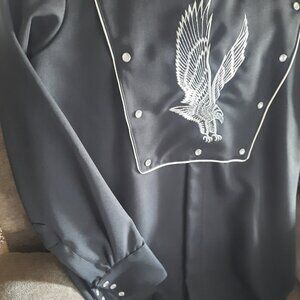 Vintage Never been worn Eagle Embroidered Pearl Snap, collar, long sleeve, black with White Eagle