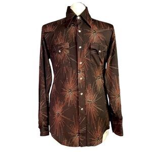 H Bar C Pearl Snap Western Shirt Men 16 35 Brown Atomic 1970s Rockabilly