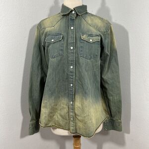 H Bar C Ranchwear Denim Shirt Men M Inspired Acid Wash Pearl Snap Western Cowboy