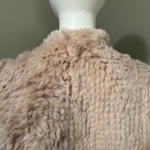 100% Genuine Rabbit Fur in a creamy, subtle peach. So incredibly cozy and soft and it drapes absolutely beautifully. The tag says M/L but I'm listing it as a medium because that's what I am and it fits very nicely.