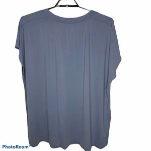 H By Halston 3X Jet Set Jersey Extended Shoulder V Neck Top Steel Blue.