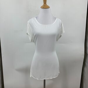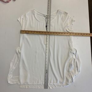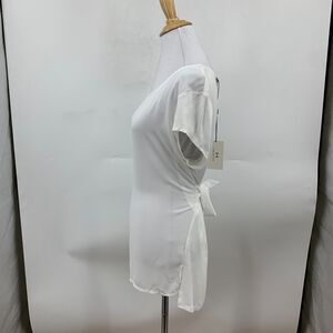 H By Halston Semi Sheer Blouse Womens S Small White Big Bow Back Cap Sleeves