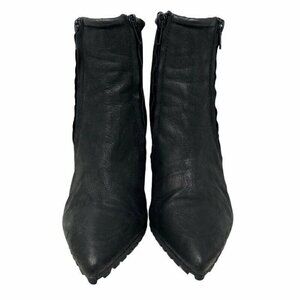 H By Halston Womens HAL Ankle Boots Booties Black Leather Wedge Heels Side Zip 8 M
