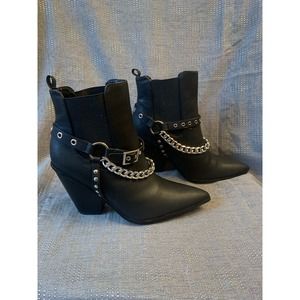 Beautiful black ankle boots from Cape Robbin. Dimitri JR8972. Faux leather. Silver chain accents. Great looking! Heel 3.5