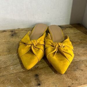 H & D Womens Yellow Pointed Toe Knotted Slip-on Mule Flats Size 40