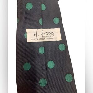 H FROGG Jermyn St. London Silk Tie. Blue w Green Polka Dot 56" x 3.25"