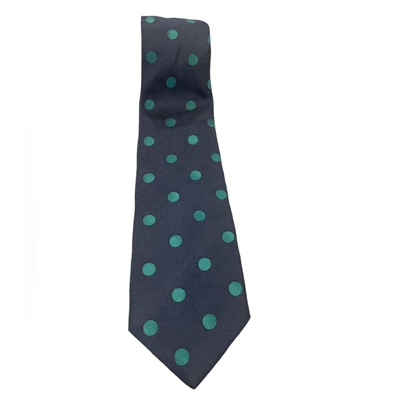 H FROGG Jermyn St. London Silk Tie. Blue w Green Polka Dot 56" x 3.25"