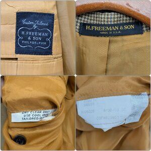 H Freeman & Sons Houndstooth Blazer Mens Brown Tan 2 Button Sports Coat Size 44R