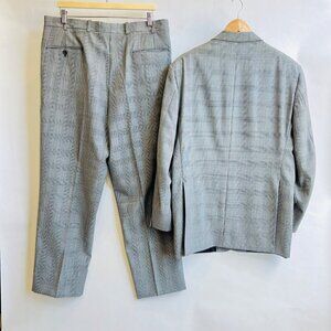 H. Freeman plaid suit, classic pleated pants, black/gray,