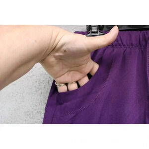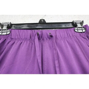 This is a nice pair of purple scrubs that are H. H. Works by Healing Hands. They are size XS/P. The style is Rebecca. They are 91% Polyester and 9% Spandex. In really good Condition.