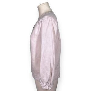 H HALSTON 100% Linen Split Neck Blouse Blush Pink Top Long Sleeve Soft Medium