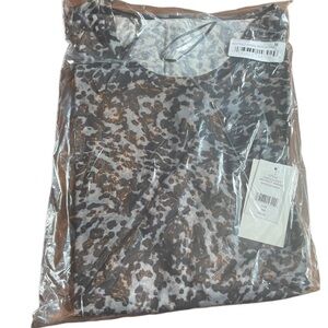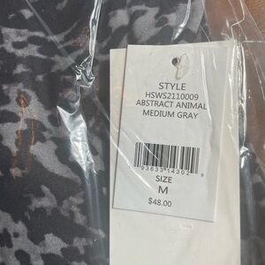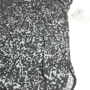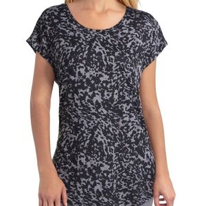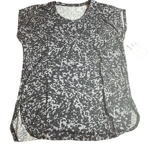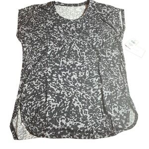 MEDIUM GRAY. NWT. From Nordstrom. A colorful pattern accents this short sleeved t-shirt, featuring a flowy high/low hem. Scoop neck. Short sleeves. Slips on over head. Allover print. High/low hem.