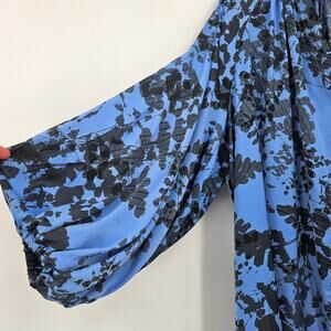 H Halston Bishop Sleeve Dress Blue Size Large