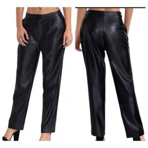 H Halston Faux Leather Pants Women Small Straight Leg Corporate Goth Grunge