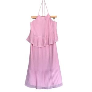 H By Halston, Layered, Pleated, Ruffle, Halter Dress. Tight according pleating. High halter neckline with tie. Backless. Fully lined. Elastic waist. Color: Pink Pearl.