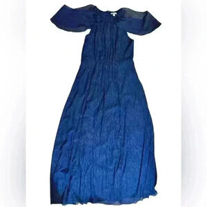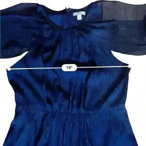 H Halston Navy Blue Metallic Thread Long Evening Gown Dress Size 14