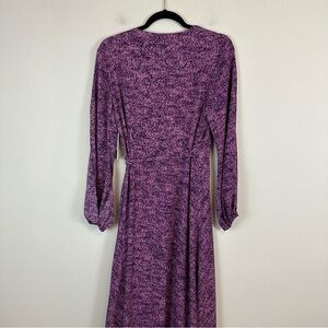 H Halston | Purple Long Sleeve Patterned Wrap Dress Size Small NWT