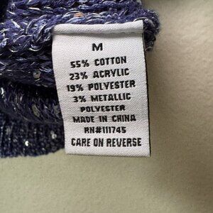 The H Halston Silver Blue Sparkly Sequin Pull On V Neck Knit Sweater in size medium is a stylish and versatile piece that can be worn for various occasions like parties, casual outings, or formal events. Made from a tight-knit fabric of cotton and acrylic, this sweater features a solid blue color with sequin accents that add a touch of sparkle. The V-neck and 3/4 sleeves make it a flattering and comfortable option for the winter, fall, and spring seasons. With its pullover style and regular fit, this sweater is sure to become a go-to wardrobe staple for any fashion-forward woman.