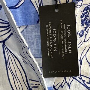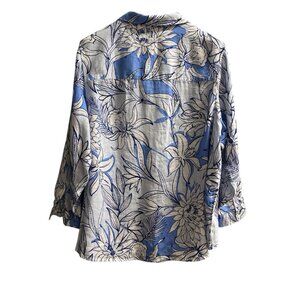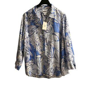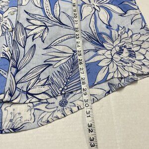 H Halston Top Women 3X Blue Floral Linen Button Down Shirt Beach Resort Vacation