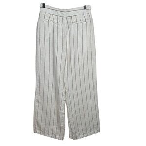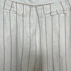 H Halston White Tan Striped Wide Leg Linen Pants Women Size 6 BLEMISH