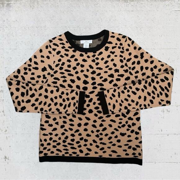 H Halston Women's Leopard Print Brown Black Long Sleeve Sweater Size Small