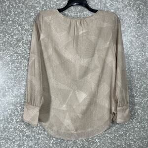 H Halston Women's Tan & Gold Metallic Glam Blouse - Size Small - Smocked Front