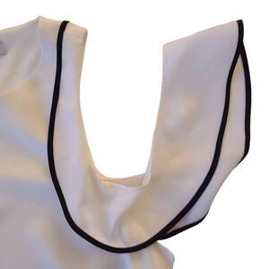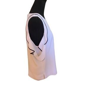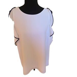 H Halston Women's White Cold Shoulder Blouse with Black Trim