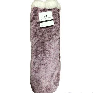 H Halston lounge socks outside soft lilac fur inside faux Sherpa NWT Size 4-10