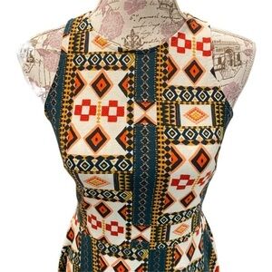 H & M Aztec Print Fit & Flare Sleeveless Racerback Dress Size Small