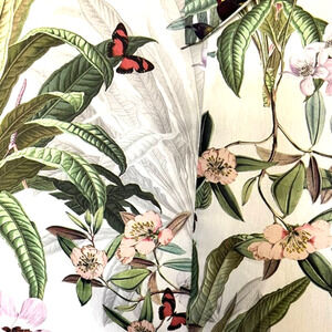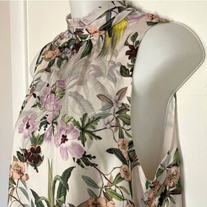 H & M BEAUTIFUL FLORAL & BIRD PRINT TIE BACK SHEATH DRESS SIZE MEDIUM