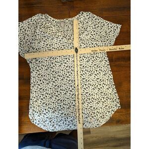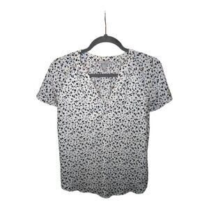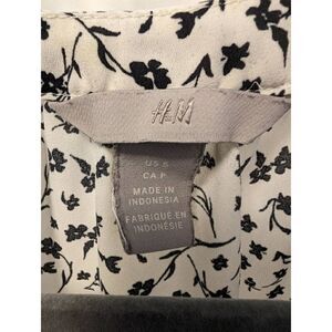 H & M Black and White Floral Short Sleeve Top with V Neck Size Women's Small
