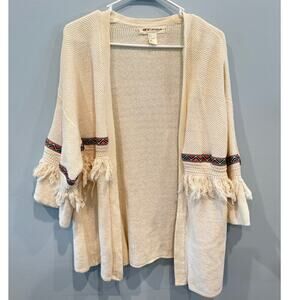 H & M Coachella Womens Open Cardigan Size Small Fringe Aztec Festival Cream Boho